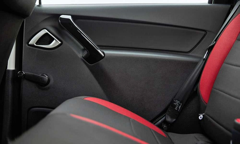 - Обивка сидений ткань. Цвет черный с красными элементами